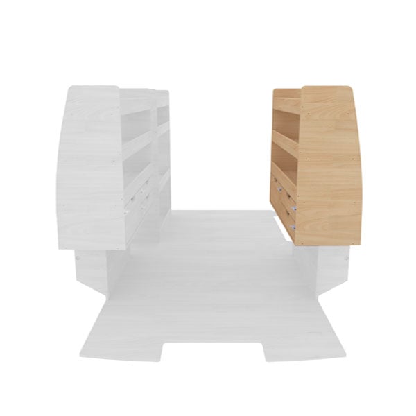 Ce module de rangement est conçu aux mesures de votre véhicule pour être installer l’arrière droit de l’espace de chargement, sur l’habillage de passage de roue conçu par Kit Utilitaire. Il offre différents espaces de rangement : 3 tiroirs et 3 étagères pour un rangement organisé et accessible.