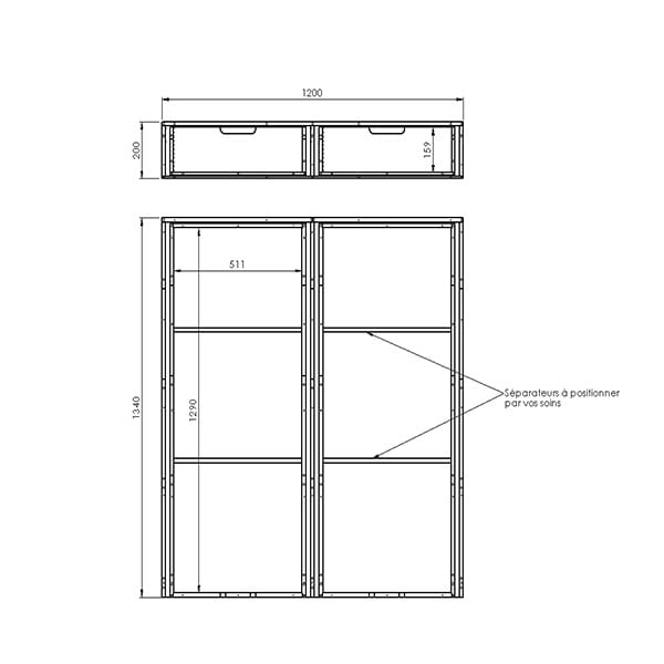 Dimensions L = 1200/ H = 200 / P = 1340| Poids =50,00Kg