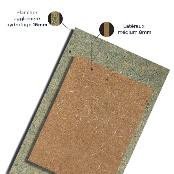 Son plancher en aggloméré hydrofuge de 16 mm et ses panneaux latéraux en médium de 8 mm offrent une solution robuste pour un usage modéré. Idéal pour ceux qui recherchent une protection fonctionnelle sans compromis sur l’essentiel.