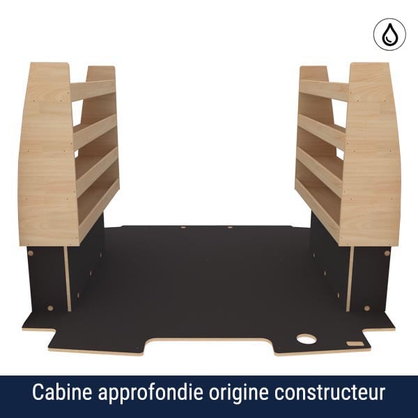 Ce kit d’aménagement complet en bois est spécialement conçu pour les Ford Transit Custom 2023 L2H1 avec cabine approfondie. Il comprend un habillage intérieur sur mesure avec plancher antidérapant, un revêtement des parois latérales et des portes arrière en contreplaqué vernis, ainsi que la protection des passages de roues en contreplaqué antidérapant, offrant à la fois robustesse et une finition haut de gamme. Le kit intègre également deux meubles de rangement latéraux prémontés, un de chaque côté, optimisés pour épouser parfaitement les formes du véhicule et maximiser l’espace de stockage. Facile à installer, durable et fonctionnel, cet ensemble transforme efficacement votre utilitaire en un espace de travail organisé et professionnel.