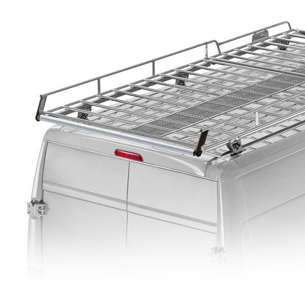 Compatible avec l’Iveco Daily 3 2014 L2H1, cette galerie utilitaire en acier soudé galvanisé est livrée avec un rouleau de chargement en aluminium pour faciliter la manutention, un déflecteur, ainsi qu’un chemin de marche renforcé assurant une circulation sécurisée sur la galerie.