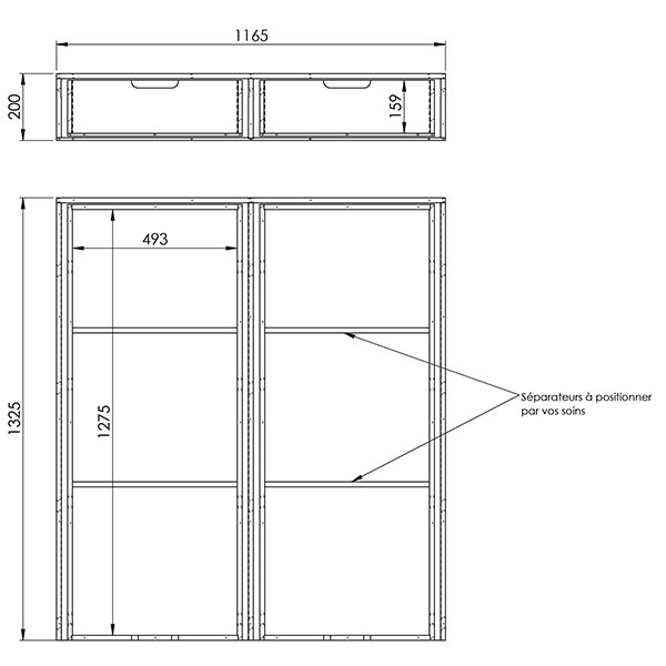 Chaque tiroir (L 1165 × H 200 × P 1325 mm) supporte jusqu’à 80 kg de charge utile et comprend 2 séparateurs modulables pour une organisation sur mesure de votre matériel.