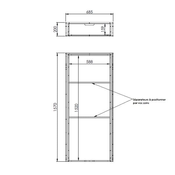 Dimensions L = 1570/ H = 200 / P = 685| Poids =30,00Kg