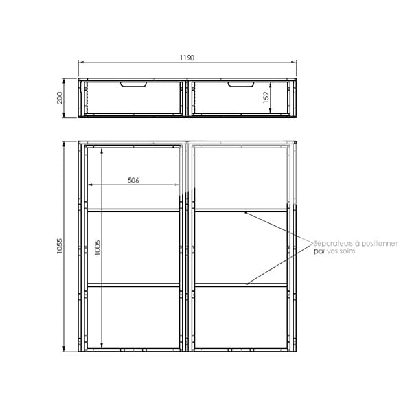 Dimensions L = 1190/ H = 200 / P = 1055| Poids =45,00Kg