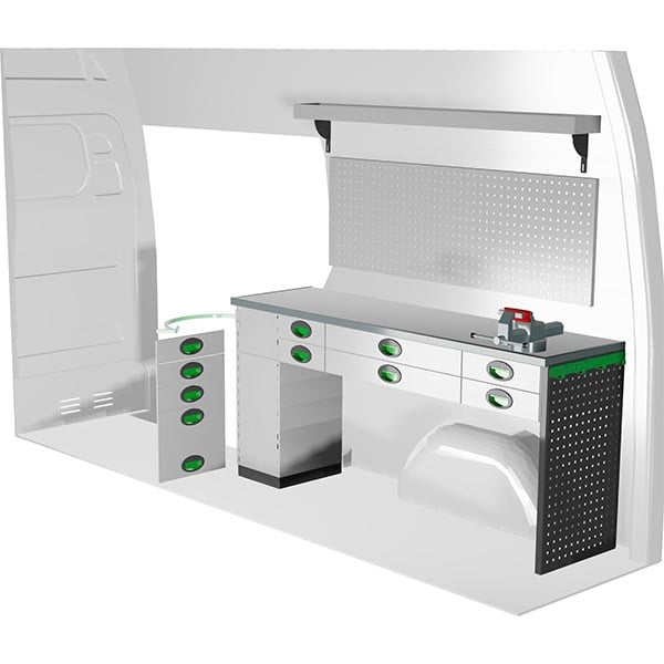 Structure robuste et modulaire, idéale pour le rangement d’outillage, de visserie et de petits composants. Convient aux professionnels mobiles recherchant un aménagement fiable et fonctionnel.
