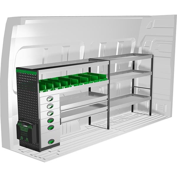 Ce kit d’aménagement en métal Edström est conçu pour Mercedes Sprinter 3 l2h2 et pour offrir un rangement simple, robuste et efficace. Installé sur le côté gauche du véhicule, à l’avant comme à l’arrière, il permet une organisation pratique et facilement accessible, idéale pour les professionnels en déplacement.