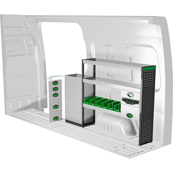 Ce kit d’aménagement en métal Edström est conçu pour offrir un rangement pratique, robuste et optimisé. Installé sur le côté droit du véhicule, il permet une organisation fonctionnelle et facilement accessible, parfaitement adaptée aux besoins des professionnels.