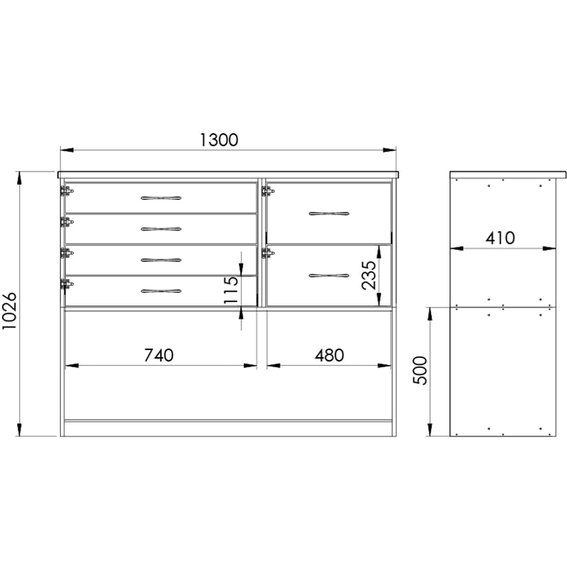 Dimensions côté droit L=1300 / H=1026 / P=410mm
