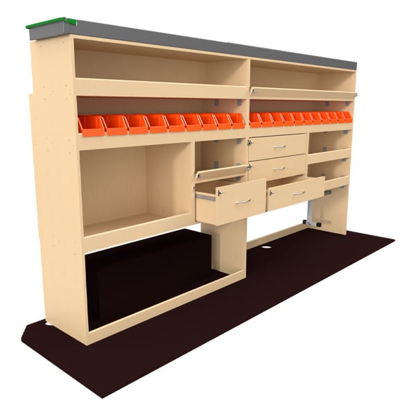 Ce kit d’aménagement « Optipro » a été optimisé pour votre véhicule utilitaire afin de vous proposer un maximum de rangements et de fonctionnalités pour maximiser votre productivité.