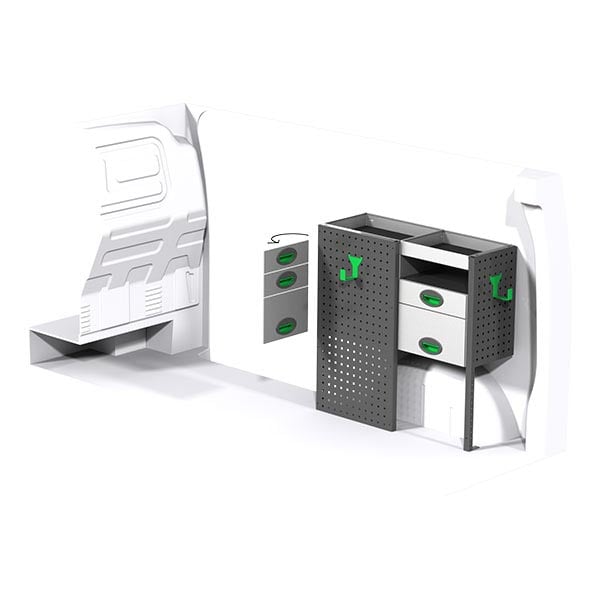 Les kits d’aménagements métalliques « Tech-System » sont modulables pour chaque modèle de véhicule, afin de répondre à vos contraintes métier tout en maximisant l’espace disponible dans votre utilitaire.