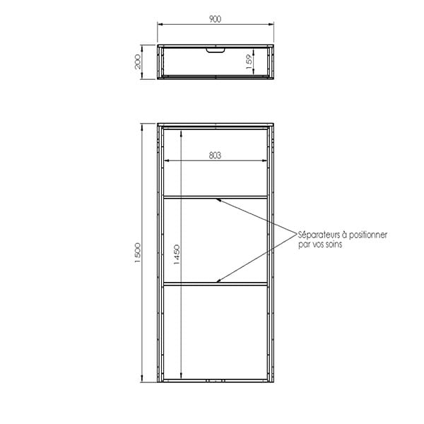 Dimensions L = 900/ H = 200 / P = 1500| Poids =38,00Kg