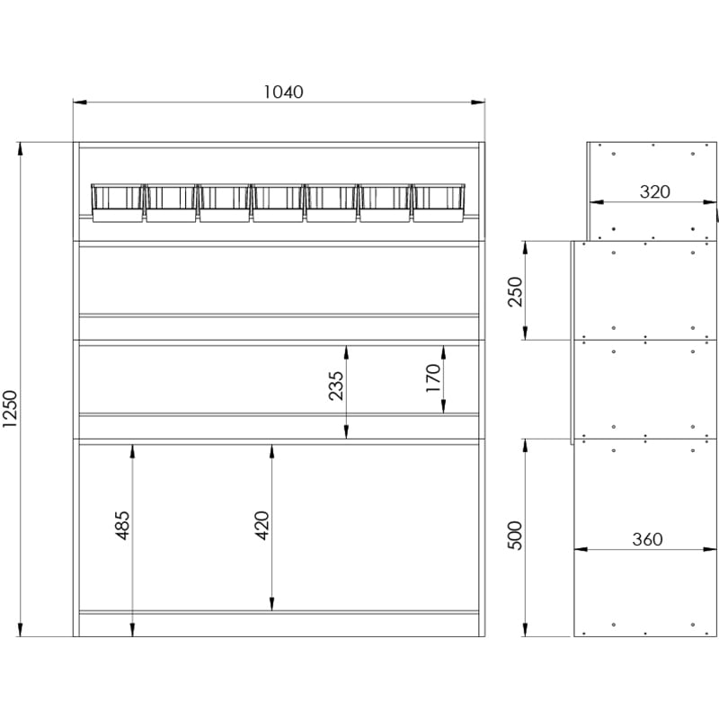 - 1x – Étagère à bacs | 1040x250x320mm