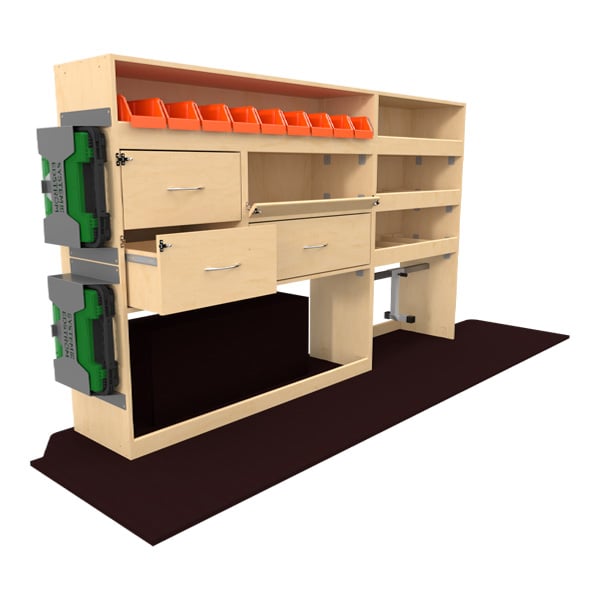 Ce kit d’aménagement « Optipro » a été optimisé pour votre véhicule utilitaire afin de vous proposer un maximum de rangements et de fonctionnalités pour maximiser votre productivité.