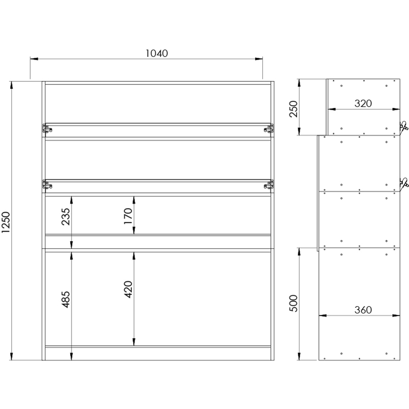 Dimensions côté droit L=1040 / H=1250/ P=360mm