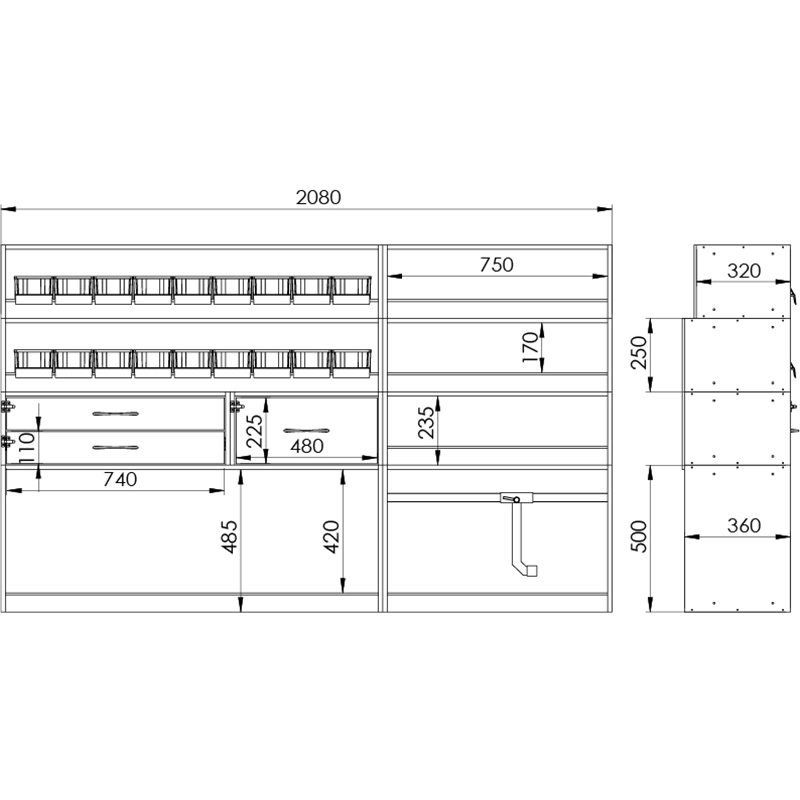 Dimensions côté gauche L=2080 / H=1250 / P=360mm