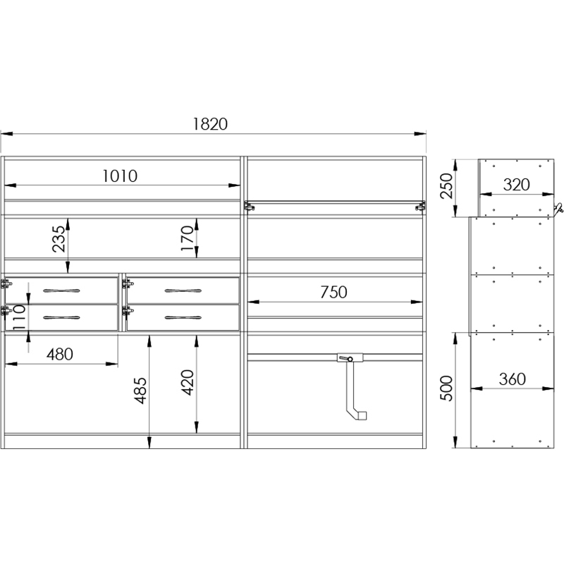 Dimensions côté gauche L=1820 / H=1250 / P=360mm