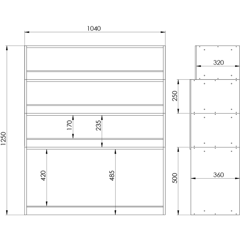 Dimensions côté droit L=1040 / H=1250 / P=360mm