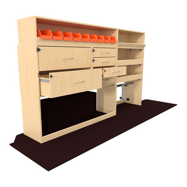 Ce kit d’aménagement « Optipro » a été optimisé pour votre véhicule utilitaire afin de vous proposer un maximum de rangements et de fonctionnalités pour maximiser votre productivité.