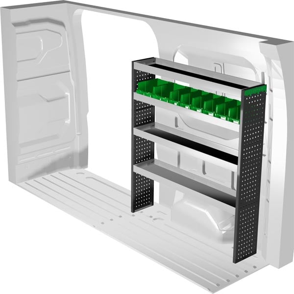 Ce kit d’aménagement en métal Edström, compatible avec le Renault Master 4 et le Nissan Interstar 2024 L2H2, est conçu pour offrir un rangement simple, robuste et efficace. Installé sur l‘arrière droit du véhicule, il permet une organisation linéaire et facilement accessible.