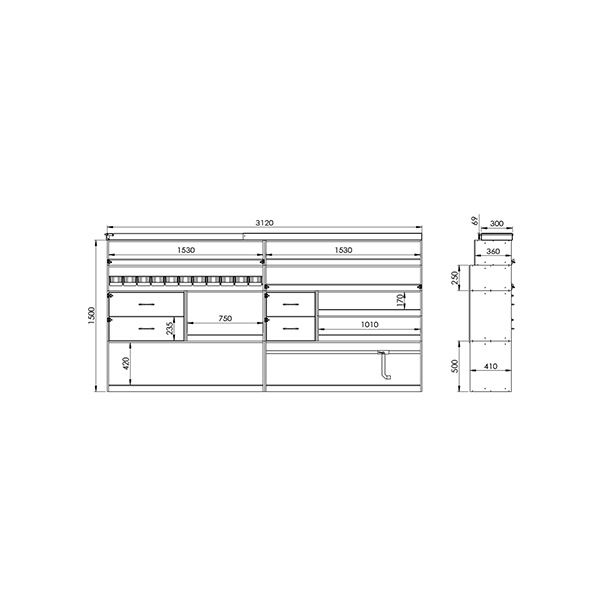 Dimensions côté gauche L=3120 / H=1500 / P=410mm