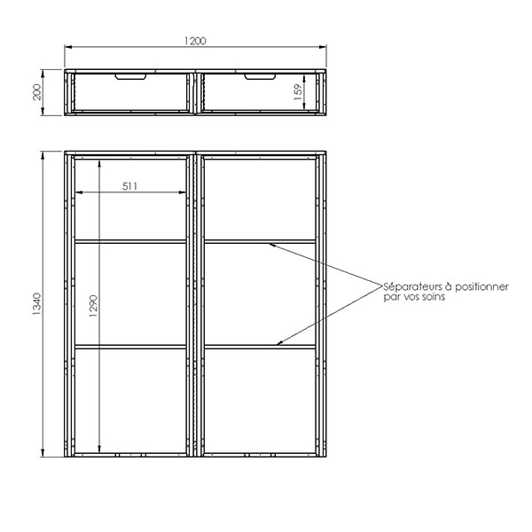 Dimensions L =1200 / H = 200 / P = 1340mm