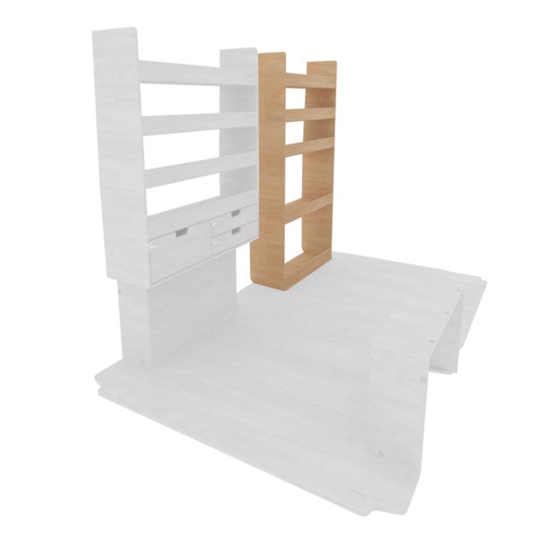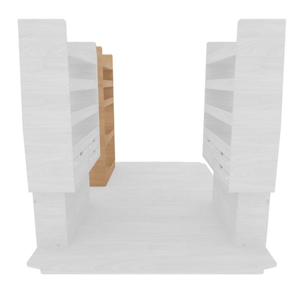 Optez pour ce module d’aménagement avant gauche, doté de 5 étagères spécialement conçues pour accueillir des objets de grand volume. Idéal pour le rangement de fûts, bidons et autres équipements encombrants, ce module se fixe directement sur le revêtement avant gauche du véhicule, vous offrant une solution pratique et robuste pour optimiser l’espace de votre utilitaire.