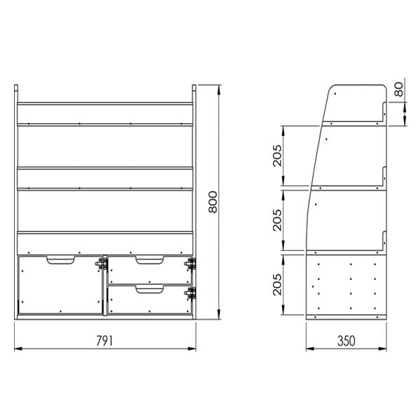 Casier arrière gauche contreplaqué PEFC avec tiroirs